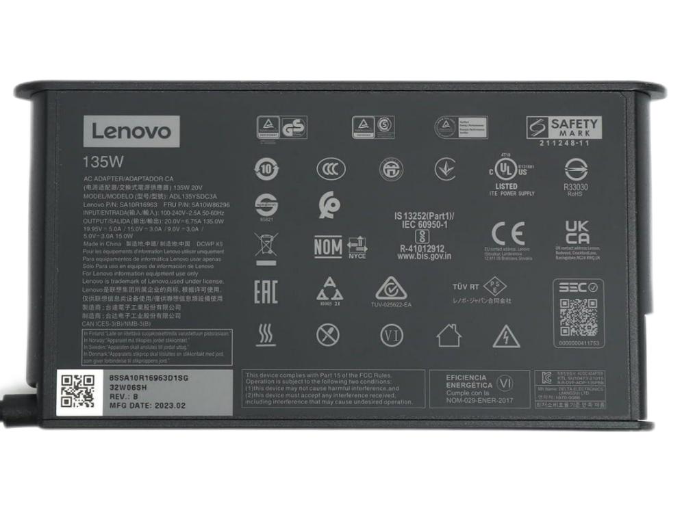135W Type-C Origineel Lenovo SA10R16963 Adapter Voeding Oplader + Netsnoer